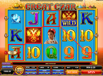 Эмулятор The Great Czar оснащен пятью барабанами с 30-тью линиями. Играть бесплатно геймеры могут, активировав любое количество линий. Для запуска вращений необходимо сделать ставку в диапазоне от одной до пяти монет. Три одинаковых изображения, расположившиеся на активной линии, считаются призовой комбинацией. За такое сочетание начисляются кредиты. Для того чтоб обналичить выигрыш, нужно в азартные игры играть на деньги.